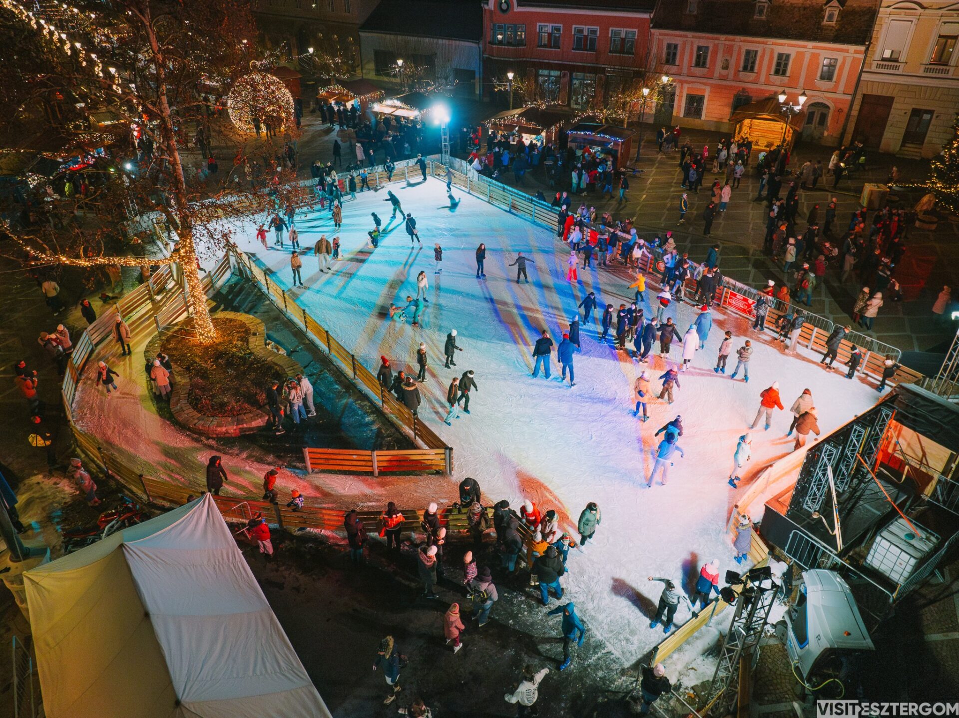 A Széchenyi téren felállított, közel félezer négyzetméteres műjégpálya egészen január elejéig várja a korcsolyázás szerelmeseit. A jégpályát november 28-án az Artist Company látványos tűzzsonglőr és szikrashow-val nyitja meg.