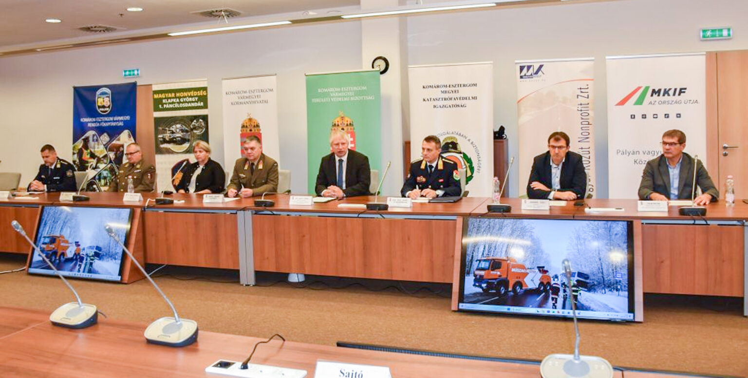 A rendkívüli téli időjárási helyzetekre való felkészülésről tartottak sajtótájékoztatót a napokban a Komárom-Esztergom Vármegyei Kormányhivatalban. A megbeszélésen a vármegye valamennyi érintett védelmi, biztonsági és üzemeltetési szervezete jelen volt, hogy közösen számoljanak be a téli időszakra történő felkészülés részleteiről.