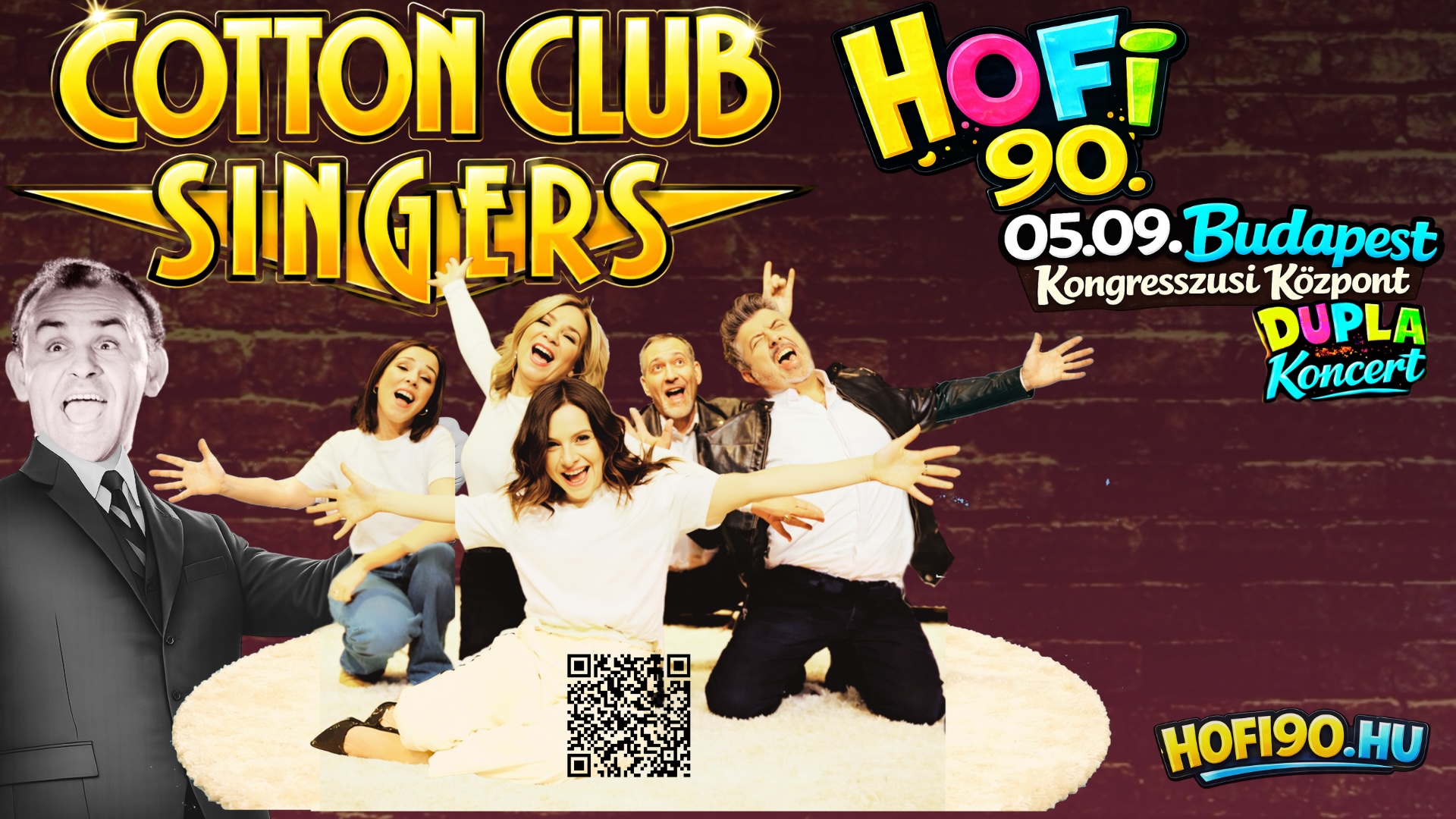 A legendás humorista, színész és énekes, Hofi Géza születésének 90. évfordulója alkalmából különleges emlékesttel készül a Cotton Club Singers. A „Hofi 90 – Swing Up!” című nagyszabású koncert május 9-én - a nagy érdeklődésre való tekintettel nemcsak este 19 órától, hanem délután 15 órától is - várja a közönséget a Budapest Kongresszusi Központban. Az ünnepi műsor a szving zenei lendületét ötvözi Hofi Géza utánozhatatlan humorával, így tisztelegve a magyar szórakoztatás egyik legnagyobb alakja előtt.