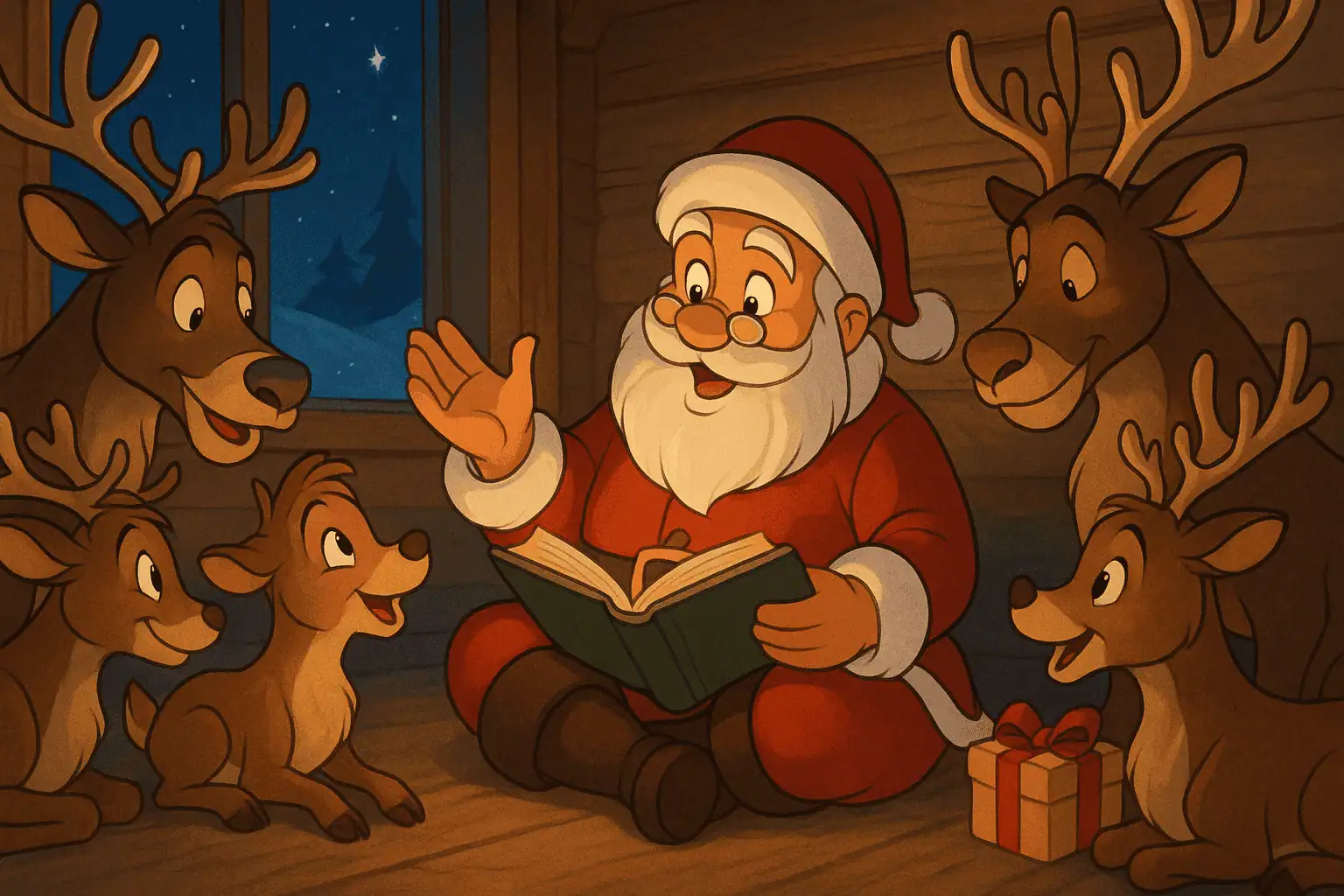 Mikulás meglepődött, de mosolyogva bólintott. Egy bolyhos prémmel szegélyezett takarót húzott maga köré, s kényelmesen hátradőlt a párnás szénabálán. Rudolf világító orrának fénye megvilágította a sarkot, így kezdődött hát a rénszarvasok esti meséje.